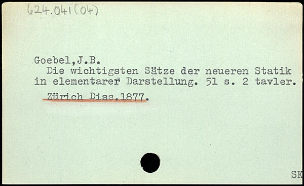 G-oebel, J.B. Die wichtigsten Sätze der neueren Statik in elementarer Darstellung