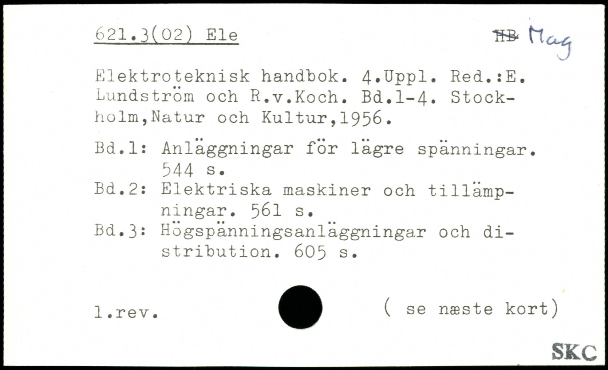 Elektroteknisk handbok. 4,Uppl. Red.:E. Lundström och R.v.Koch.