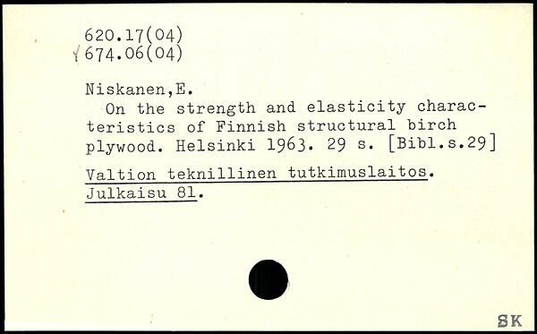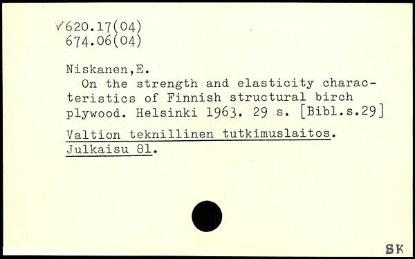On the strength and elasticity characteristics of Finnish structural birch plywood.