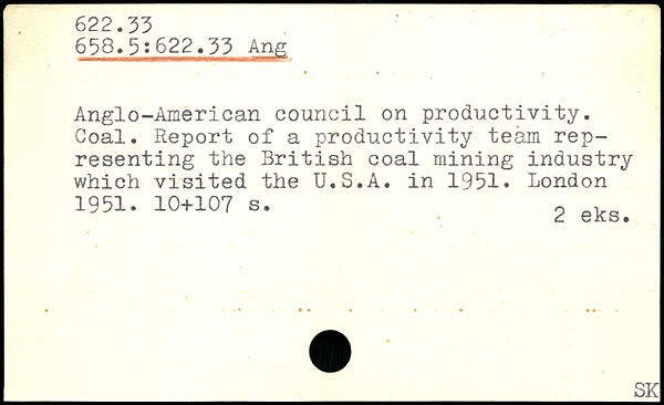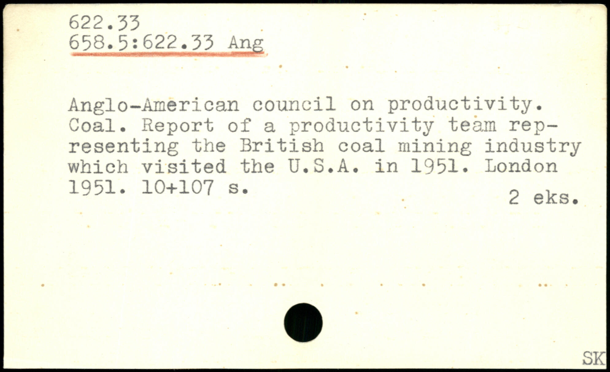 Anglo-American council on productivity. Coal. Report of a productivity team representing the British coal mining industry which visited the U.S.A. in 1951.