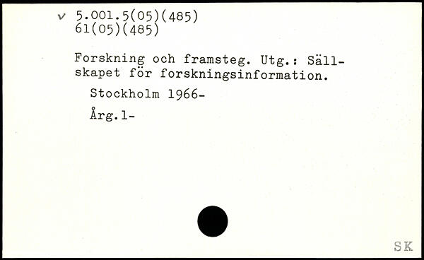 Forskning och framsteg. Utg.: Sällskapet for forskningsinformation.