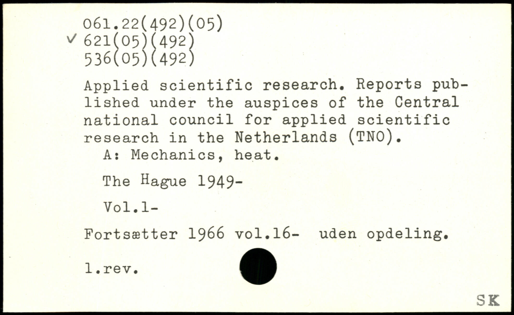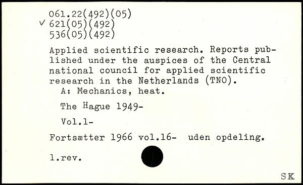 Applied scientific research. Reports published under the auspices of the Central national council for applied scientific research in the Netherlands (TNO). A: Mechanics, heat.