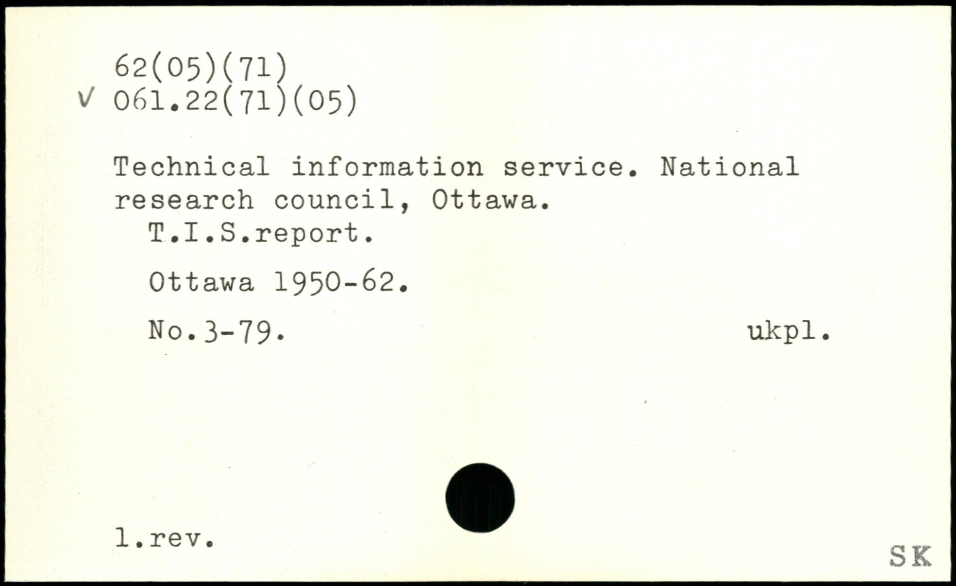 Technical information Service. National research council, Ottawa. T.I.S.report.