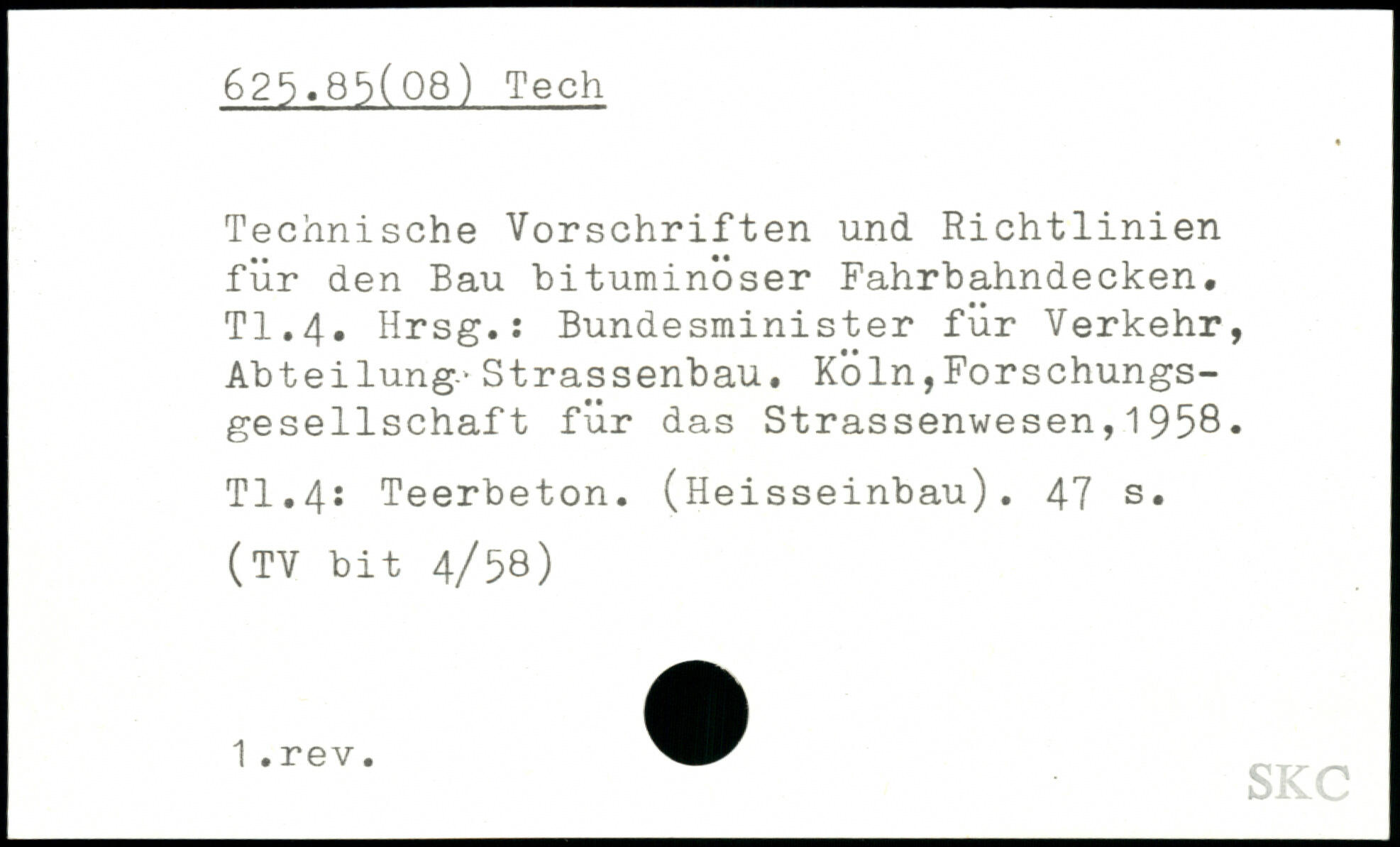 Technische Vorschriften und Richtlinien für den Bau bituminöser Fahrbahndecken. TI.4. Hrsg.: Bundesminister für Verkehr, Abteilung-Strassenbau.