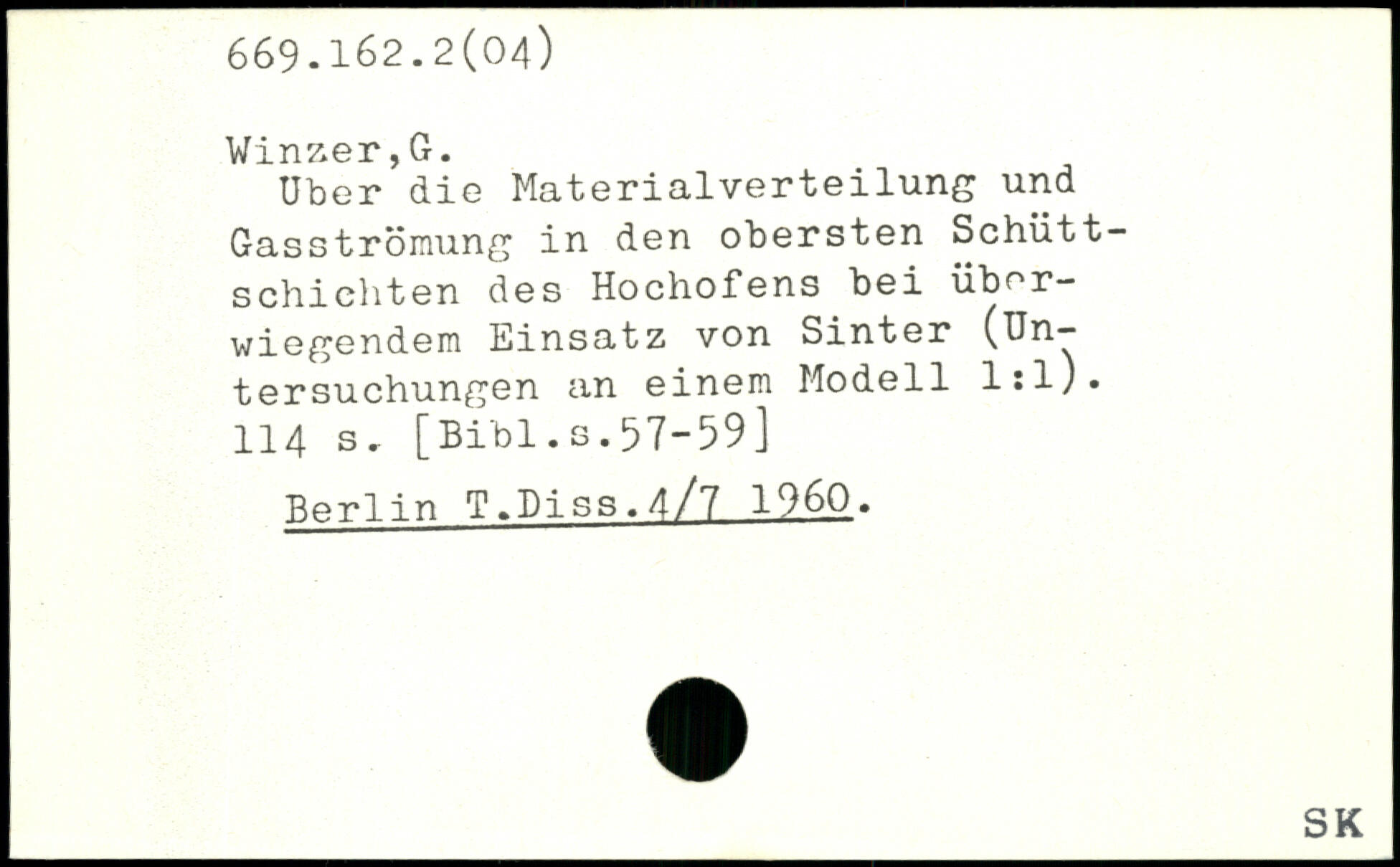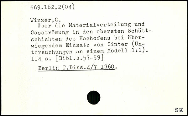 Uber die Materialverteilung und Gasströmung in den obersten Schütt-schiehten des Hochofens bei überwiegendem Einsatz von Sinter (Untersuchungen an einem Modell l:l).