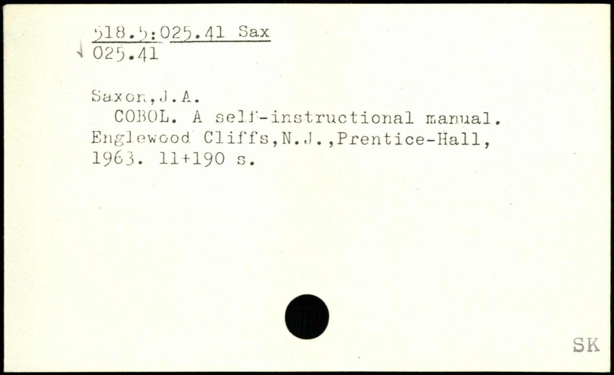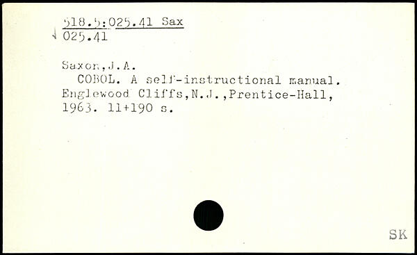 Saxon T J. A. COBOL. A self-instructional manual. Englewood Cliffs,N..