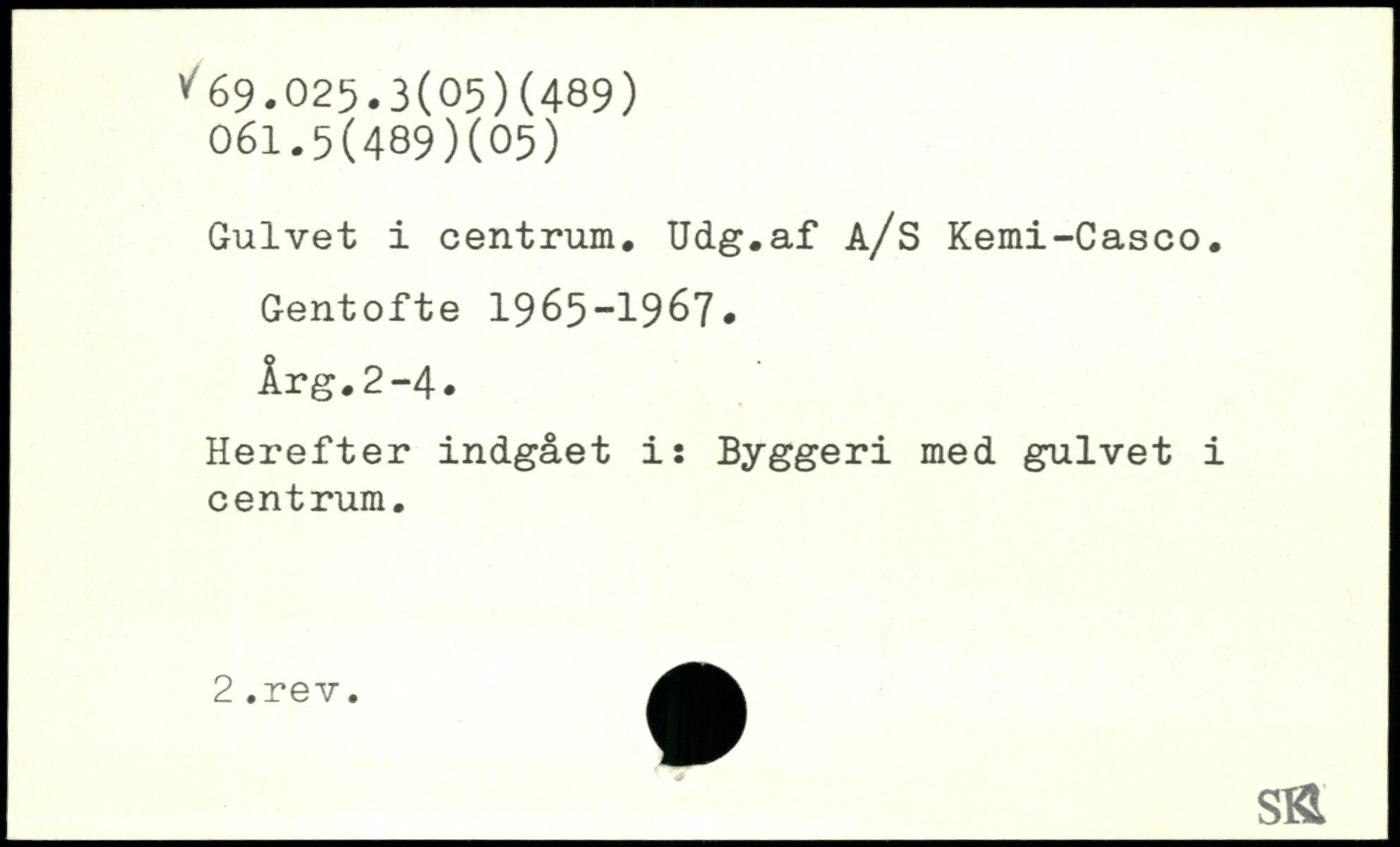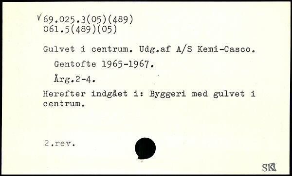 Gulvet i centrum. Udg.af a/S Kemi-Casco. Gentofte 1965-1967. Årg.2-4. Herefter indgået i: Byggeri med gulvet i centrum. ]