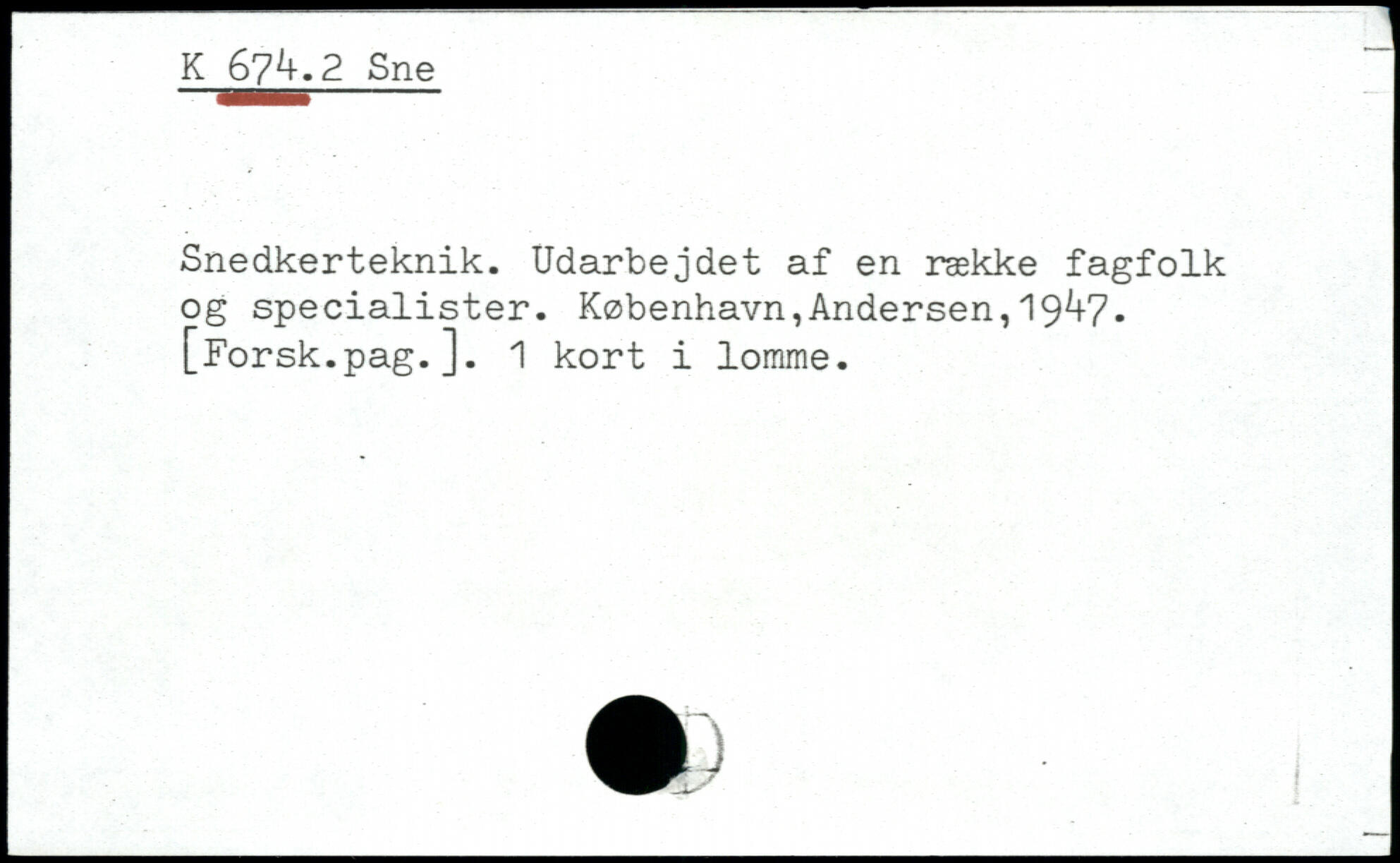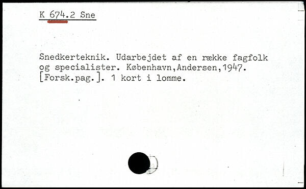 Snedkerteknik. Udarbejdet af en række fagfolk og specialister. København,Andersen,I9V7.