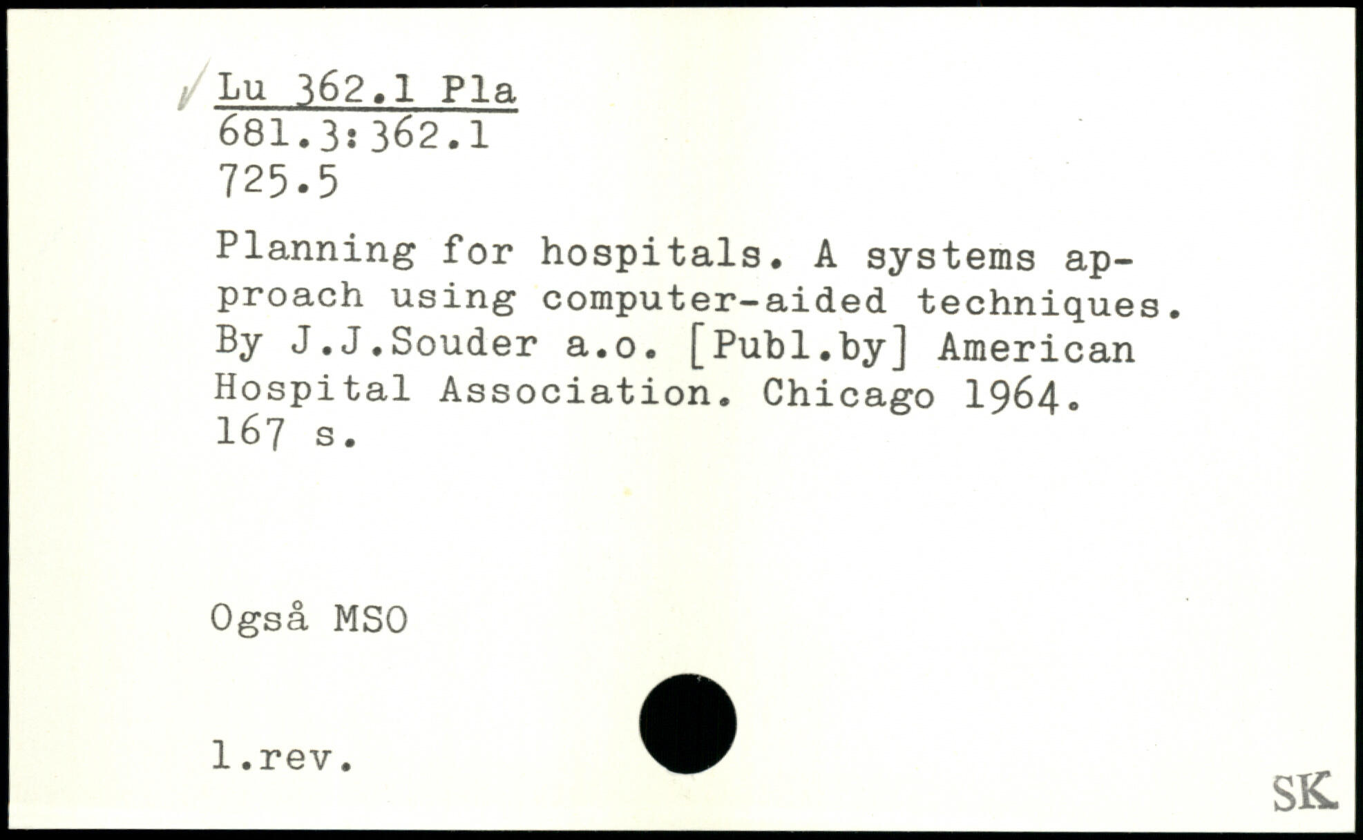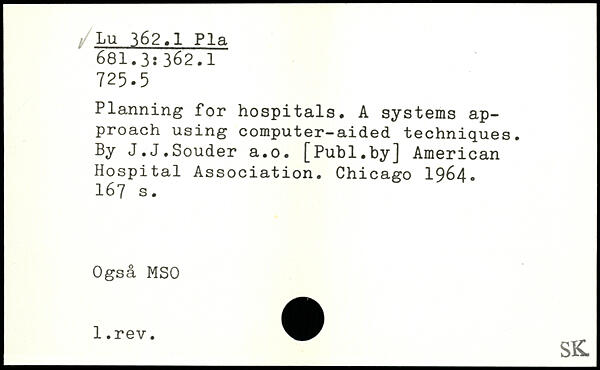 Planning for hospitals. A systems approach using computer-aided techniques. By J.J.Souder a.o.