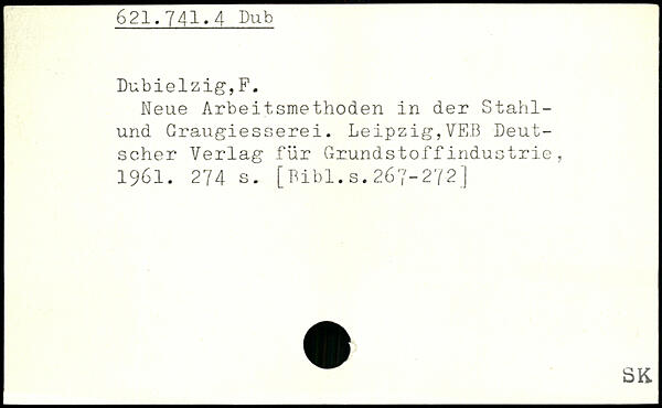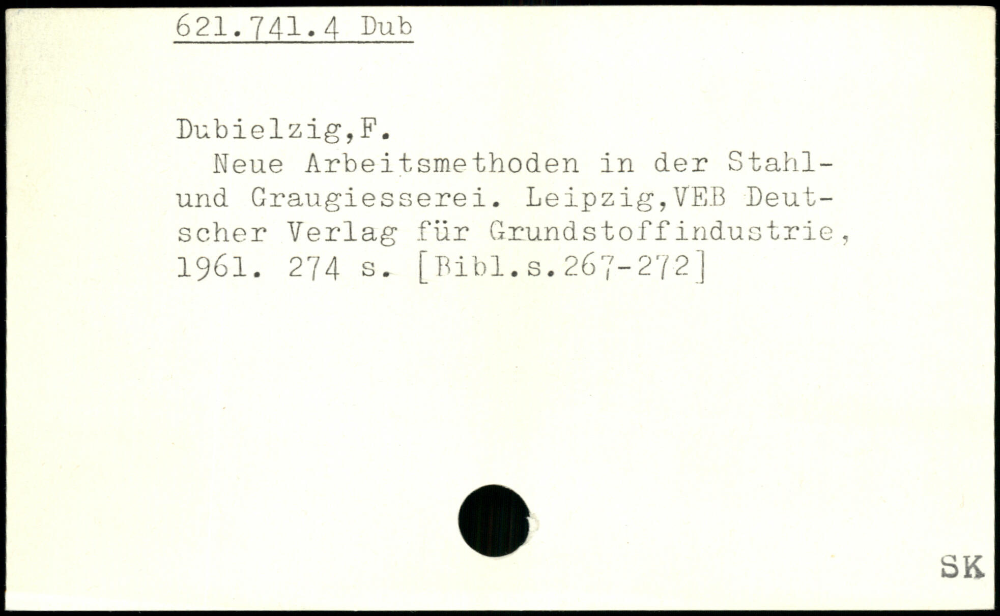Neue Arbeitsmethoden in der Stahl-und Graugiesserei. Leipzig,VEB Deutscher Verlag für Grundstoffindustrie, 1961.