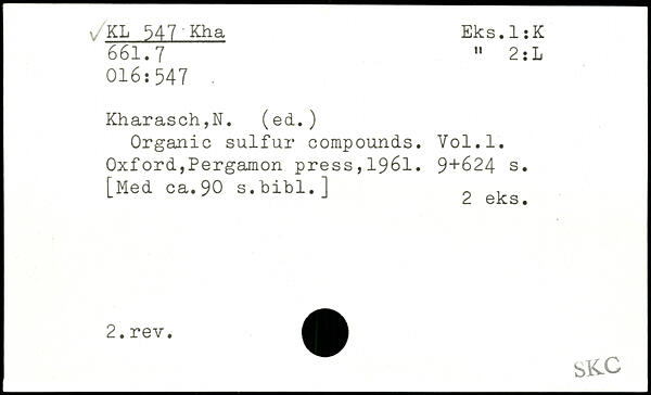 Organic sulfur compounds. Yol.l.