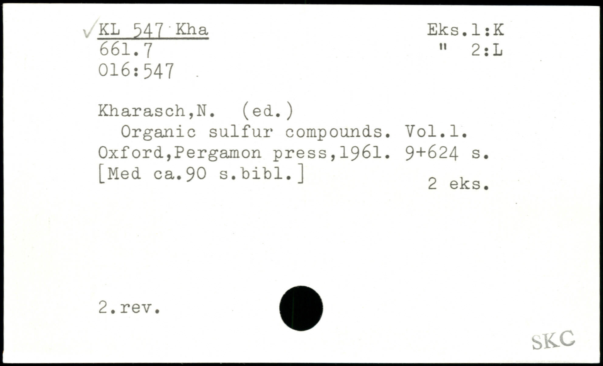 UDK: 547 Kha, 661.7, 016:547