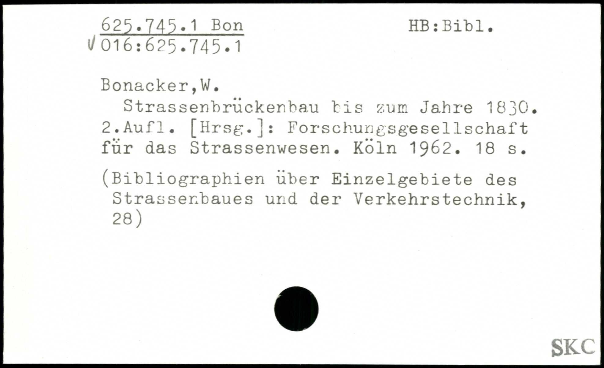 Strassenbrückenbau bis zum Jahre 1830.