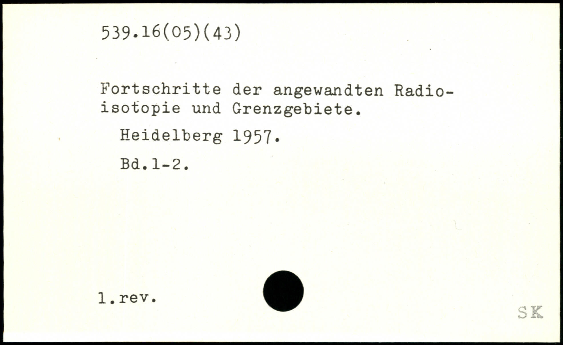 Fortschritte der angewandten Radio-isotopie und Grenzgebiete. Heidelberg 1957.