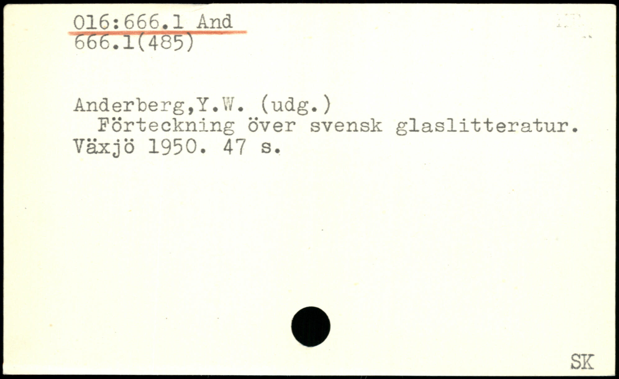 Förteckning över svensk glaslitteratur. Yäxjö 1950.