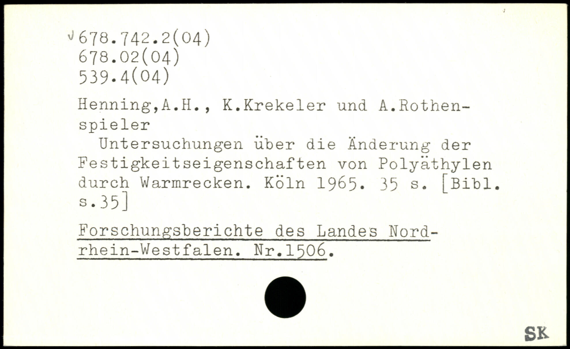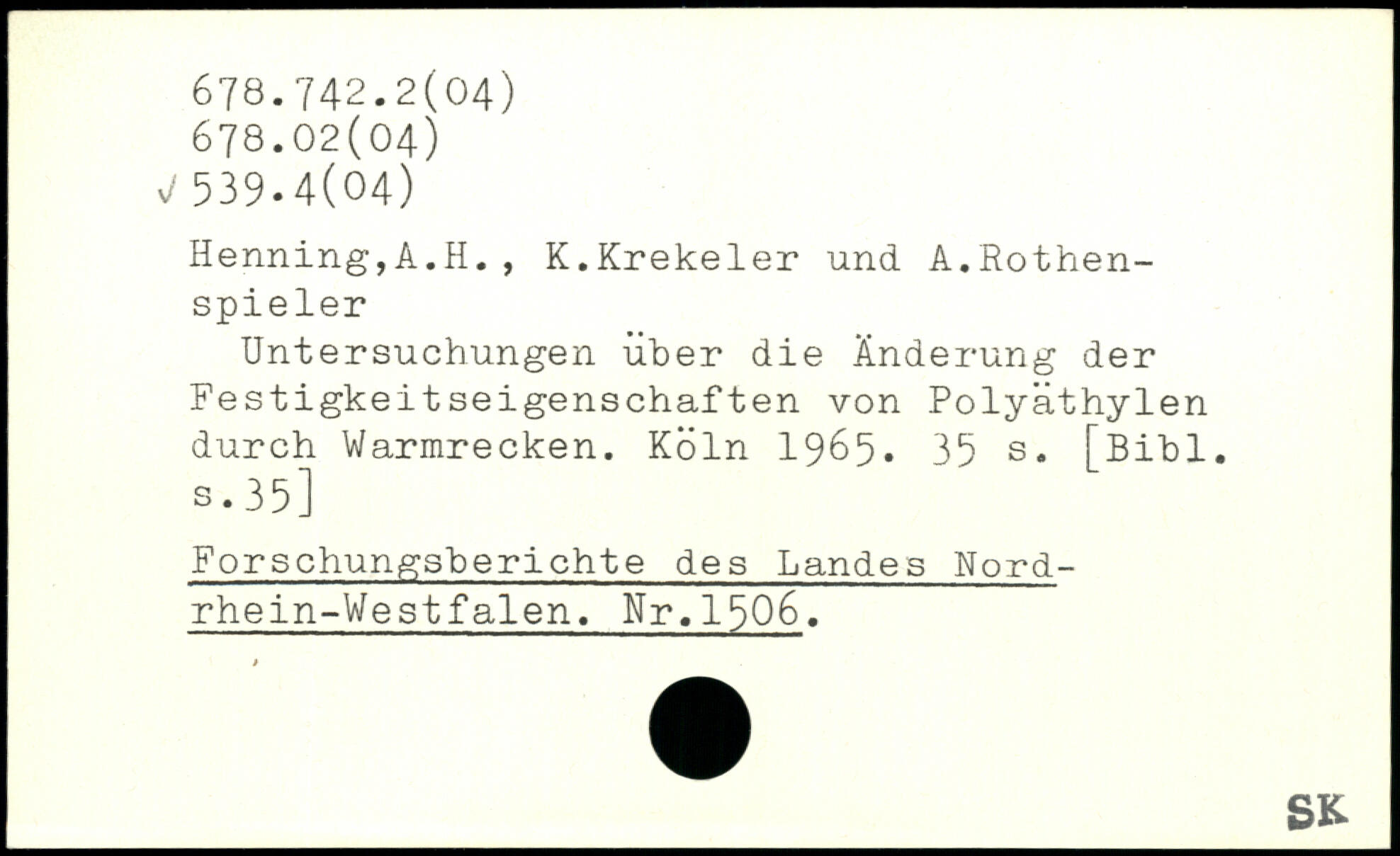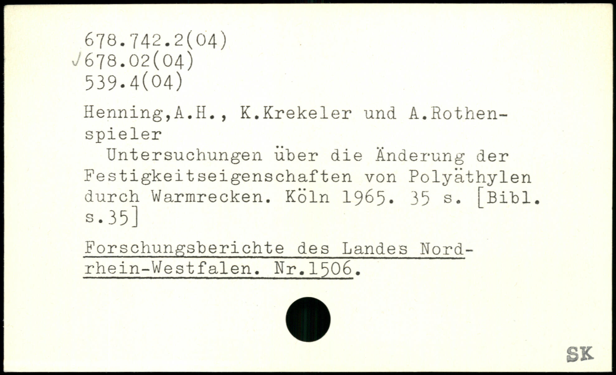 Untersuchungen über die Änderung der Festigkeitseigenschaften von Polyäthylen durch Warmrecken.