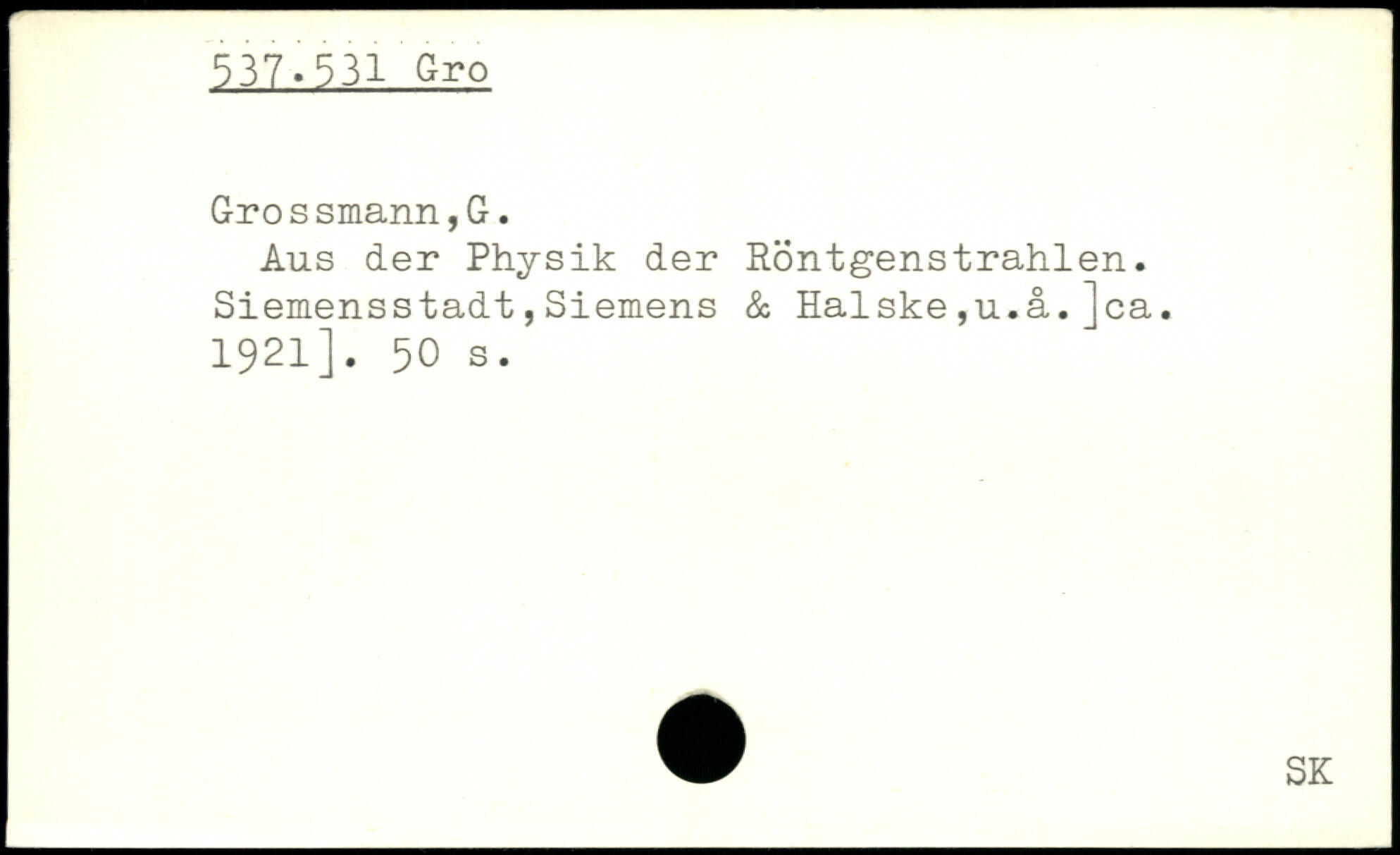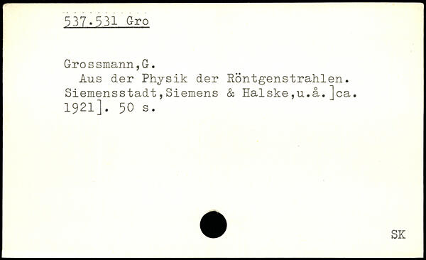 Aus der Physik der Röntgenstrahlen. Siemensstadt,Siemens & Halske,u.å.]ca. 1921].