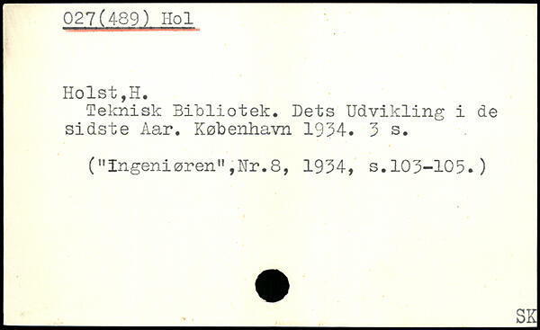Teknisk Bibliotek. Dets Udvikling i de sidste Aar.