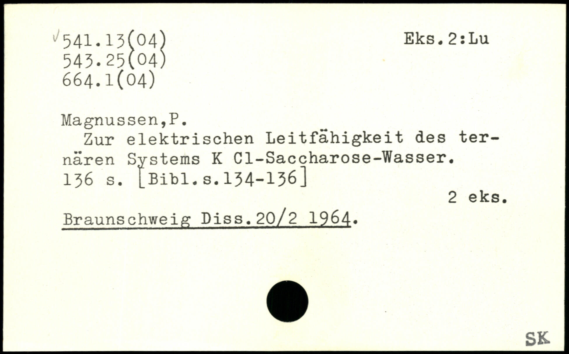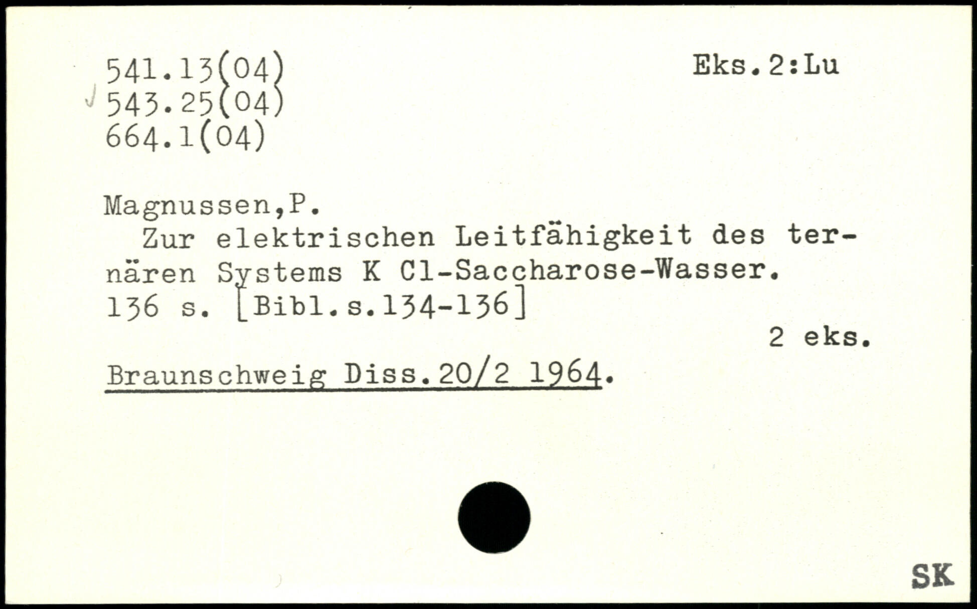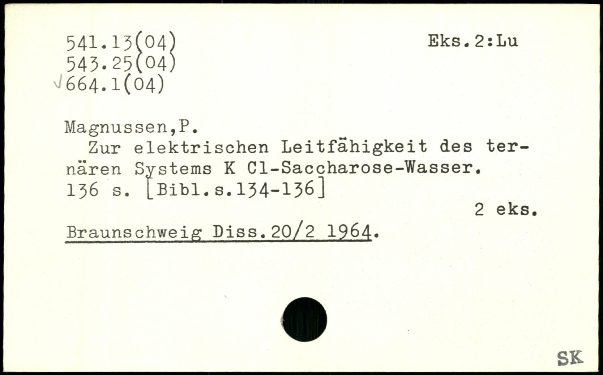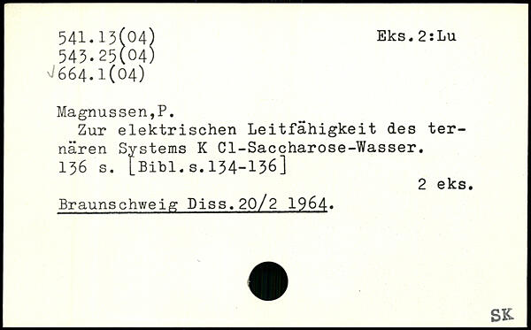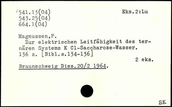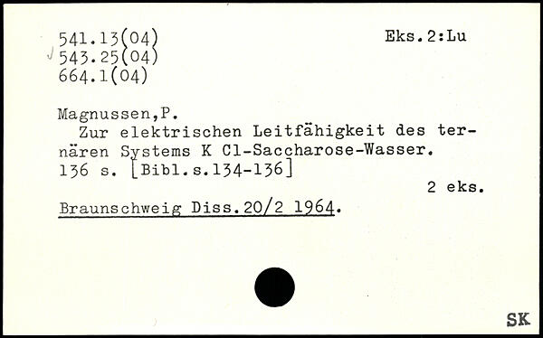 Zur elektrischen Leitfähigkeit des ternären Systems K Cl-Saccharose-Wasser.