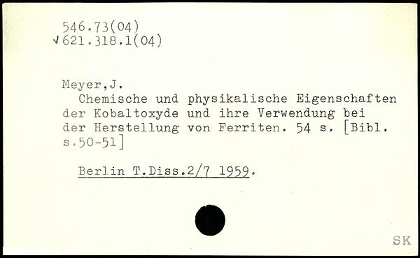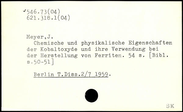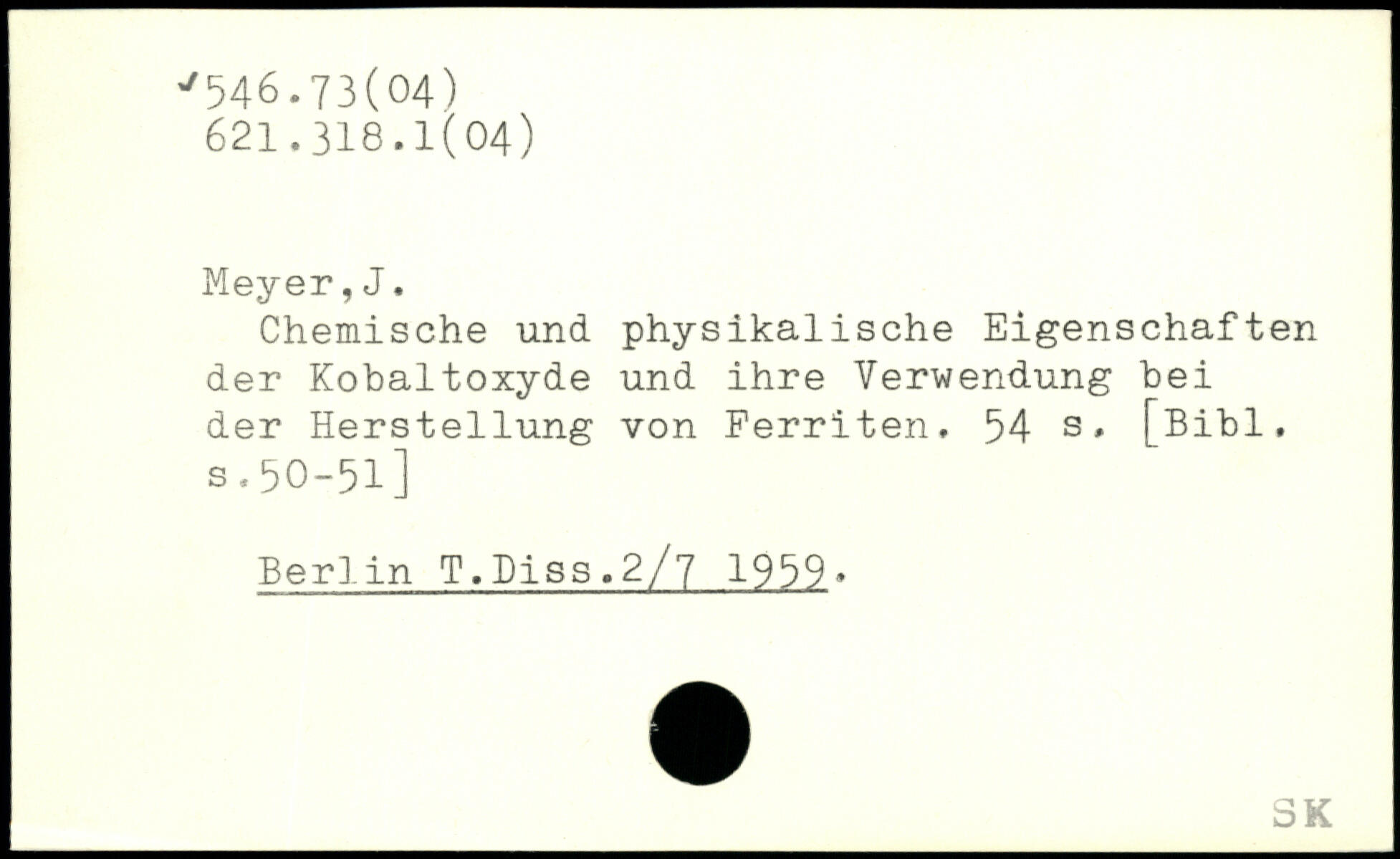 Chemische und physikalische Eigenschaften der Kobaltoxyde und ihre Verwendung bei der Herstellung von Perriten