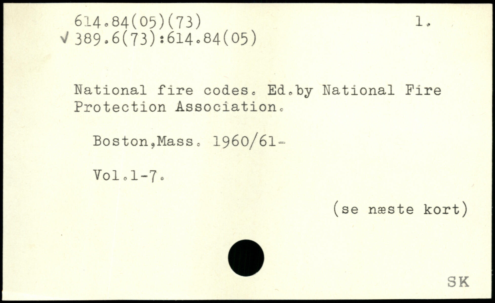 National fire codes, Ed.by National Fire Protection Association Boston?Masso 196o/6l~ Vol o 1-7.