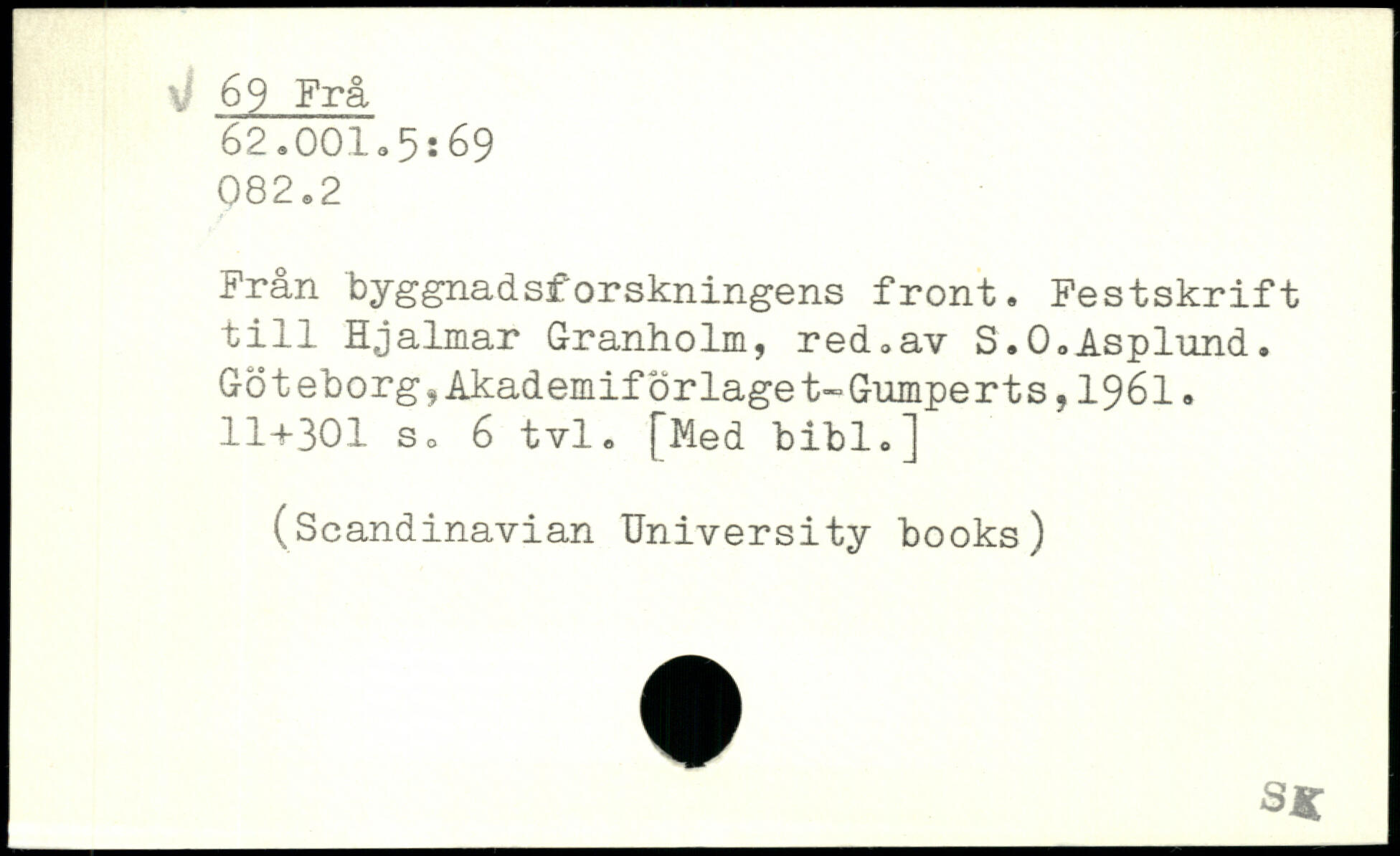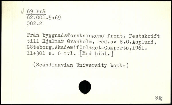 Från byggnadsforskningens front. Festskrift till Hjalmar Granholm, red.av S.0.Asplund. GöteborgjAkademiförlaget-Gumperts,1961.