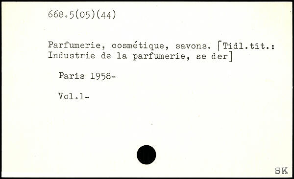 Parfumerie, cosmétique, savons, [Tidl.tit.ï Industrie de la parfumerie, se der]