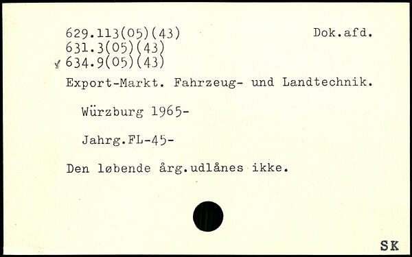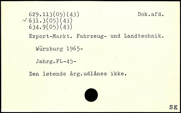 Export-Markt. Fahrzeug- und Landtechnik. Würzburg 1965-Jahrg.FL-45- Den løbende årg.udlånes ikke.