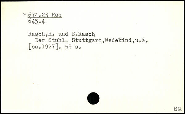 Rasch,H, und B,Rasc& Der Stuhl, Stuttgart,Wedekind,u,a.