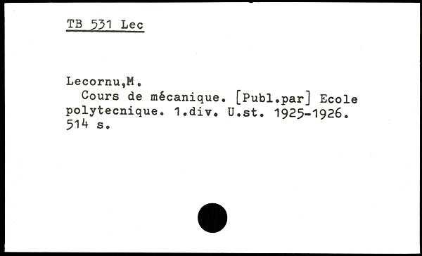 Cours de mécanique. [Publ.par] Ecole polyteenique. I.div. U.st. 1925-1926. 51 ^ s.