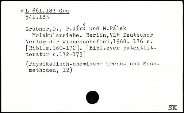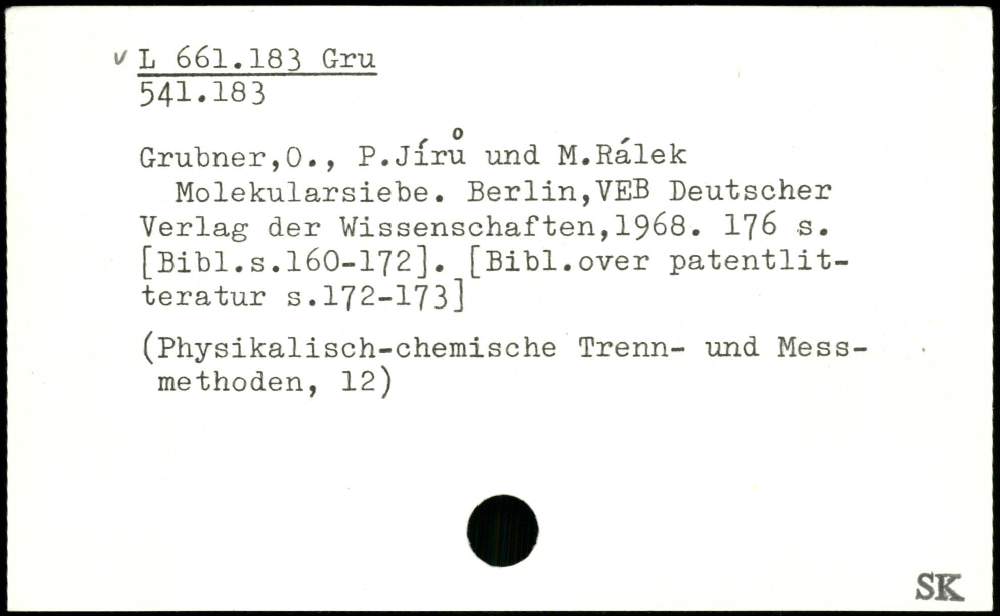 Molekularsiebe. Berlin,VEB Deutscher Verlag der Wissenschaften,1968.