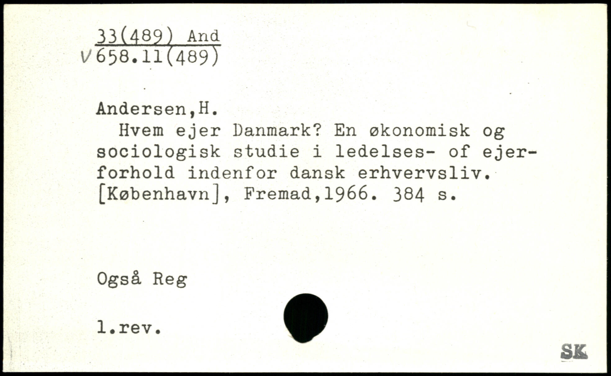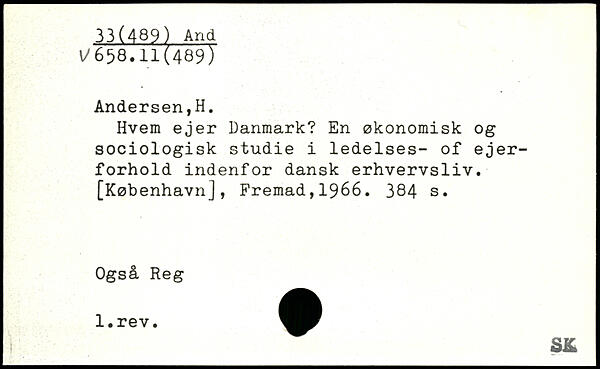 Hvem ejer Danmark? En økonomisk og sociologisk studie i ledelses- of ejerforhold indenfor dansk erhvervsliv. [København], Fremad,1966.