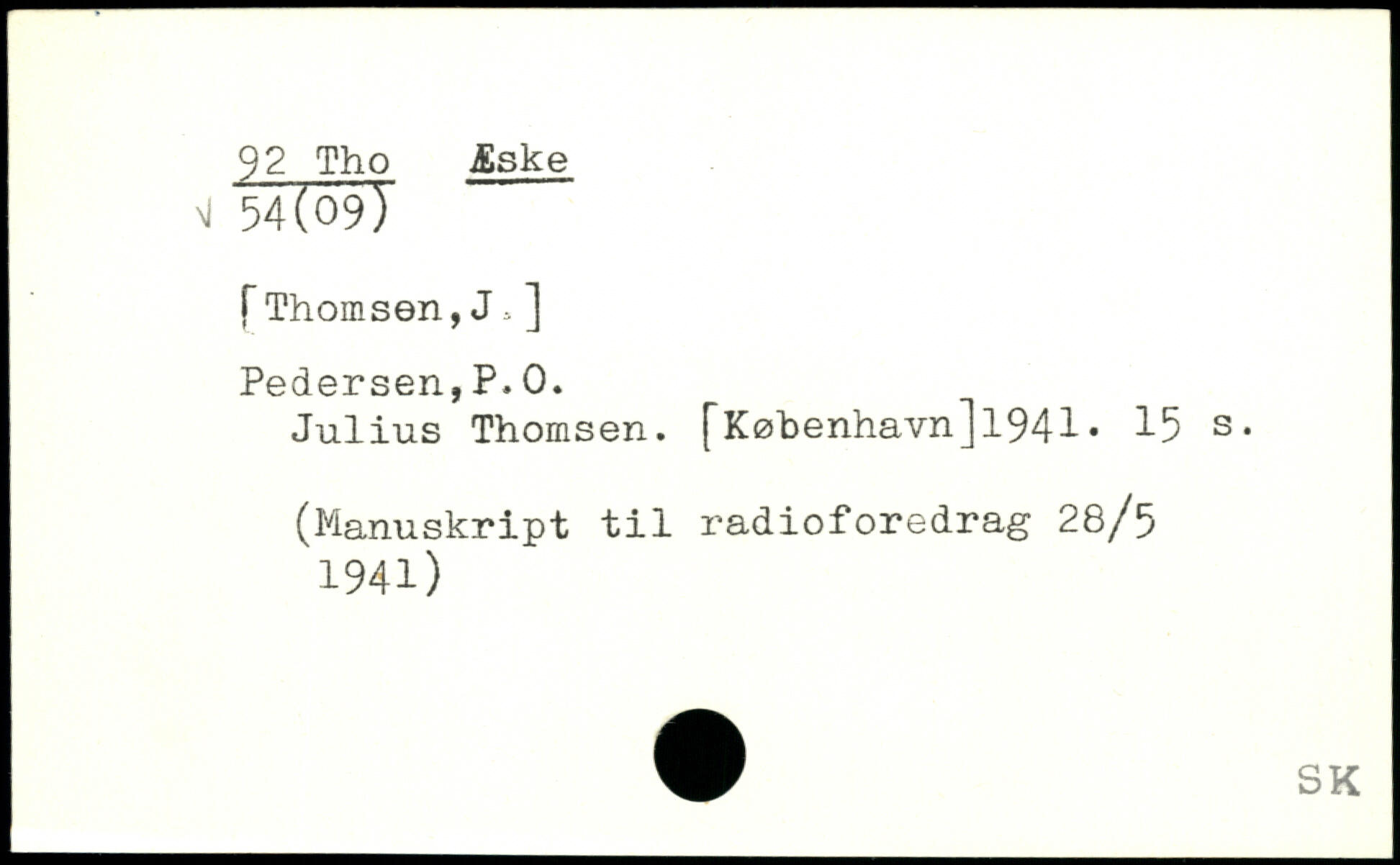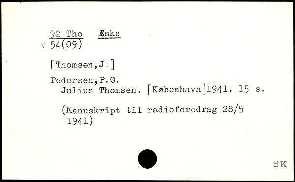 Julius Thomsen. [København]1941.