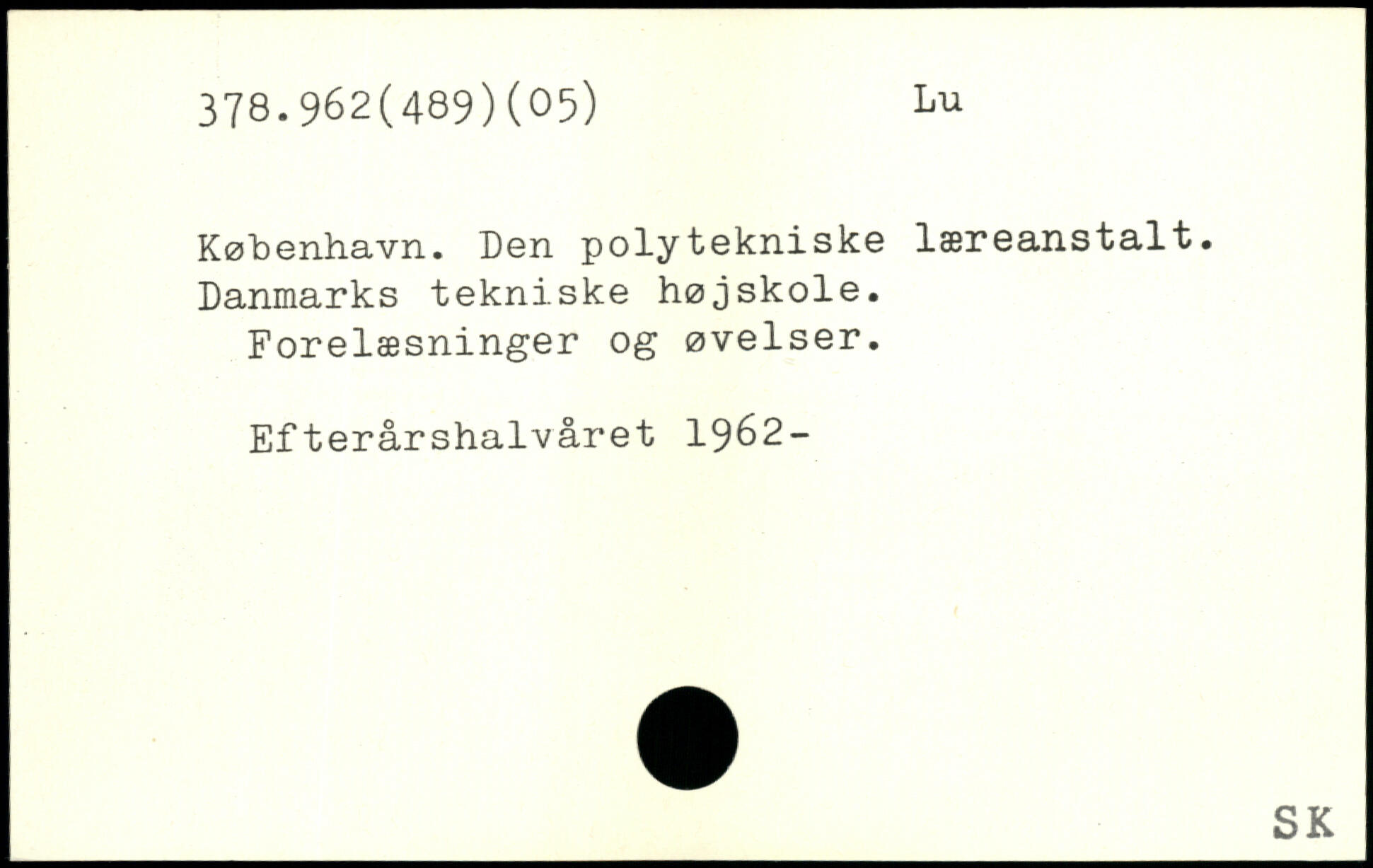 København. Den polytekniske læreanstalt. Danmarks tekniske højskole. Forelæsninger og øvelser. Efterårshalvåret 1962-