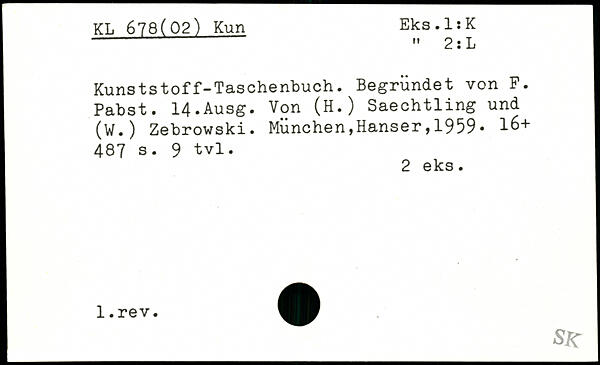 Kunststoff-Taschenbuch. Begründet von F. Pabst. 14.Ausg. Von (H.) Saechtling und (W.) Zebrowski.