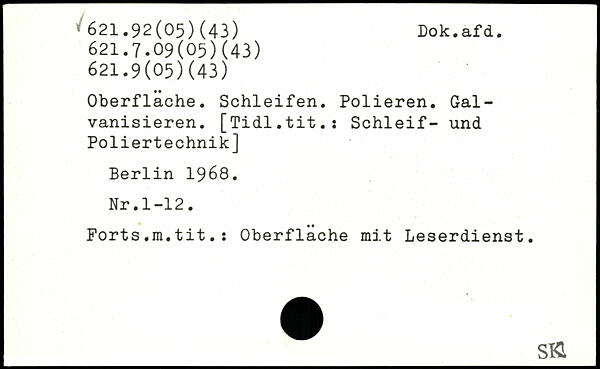 Oberfläche. Schleifen. Polieren. Galvanisieren. [Tidl.tit.s Schleif- und Poliertechnik]
