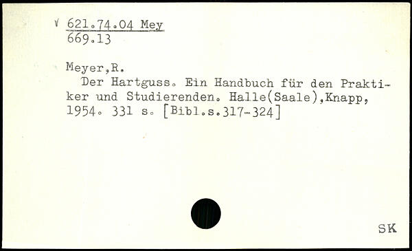 Der Hartgusso Ein Handbuch für den Praktiker und Studierendeno Halle(Saale),Knapp, 1954.