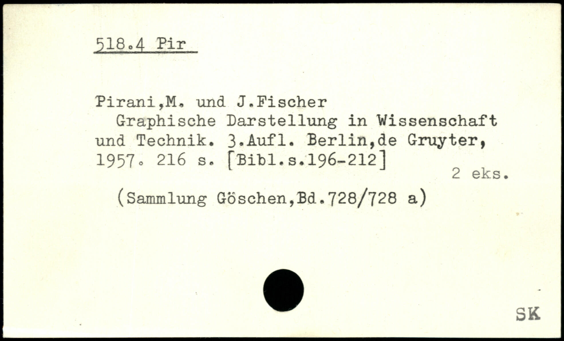 Pirani,M, und J.Fischer Graphische Darstellung in Wissenschaft und Technik. ß.Aufl. Berlin,de Gruyter, 1957o
