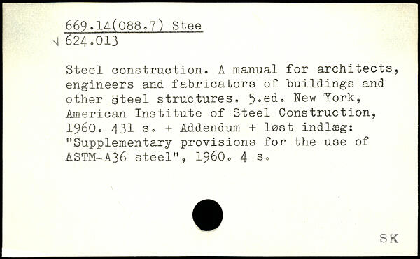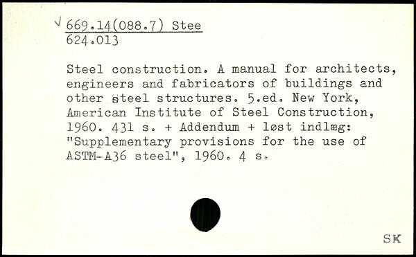 Steel construction. A manual for architects, engineers and fabricators of buildings and other gteel structures. New York, American Institute of Steel Construction, 1960.
