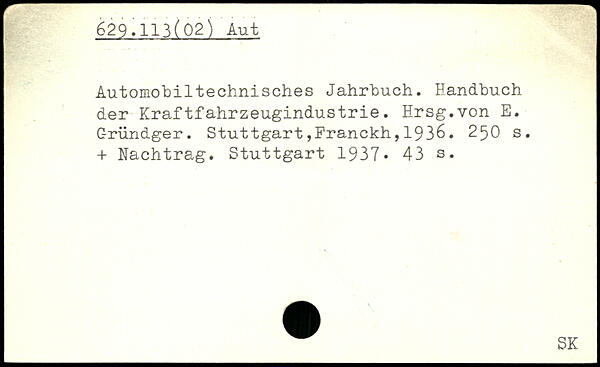 Automobiltechnisches Jahrbuch. Handbuch der Kraftfahrzeugindustrie. Hrsg.von E. G-ründger.