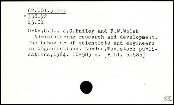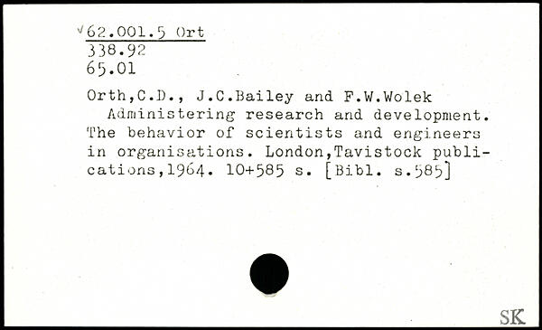 Administering research and development. The behavior of scientists and engineers in organisations.