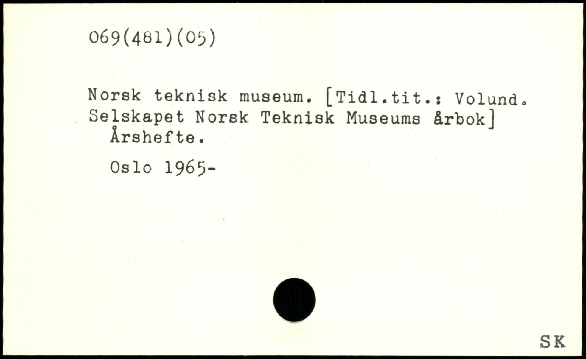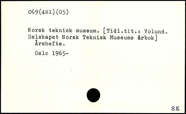 Norsk teknisk museum. [Tidl.tit.: Volund. Selskapet Norsk Teknisk Museums årbok] Årshefte. Oslo 1965-