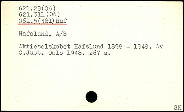Aktieselskabet Hafslund 1898 - 1948. Av C.Just. Oslo 1948.