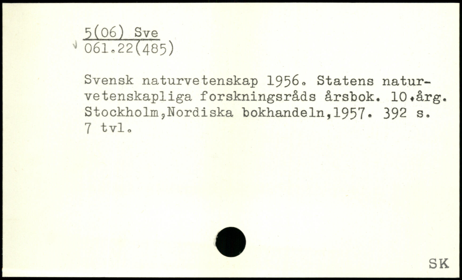 Svensk naturvetenskap 1956, Statens naturvetenskapliga forskningsråds årsbok. lCUårg.