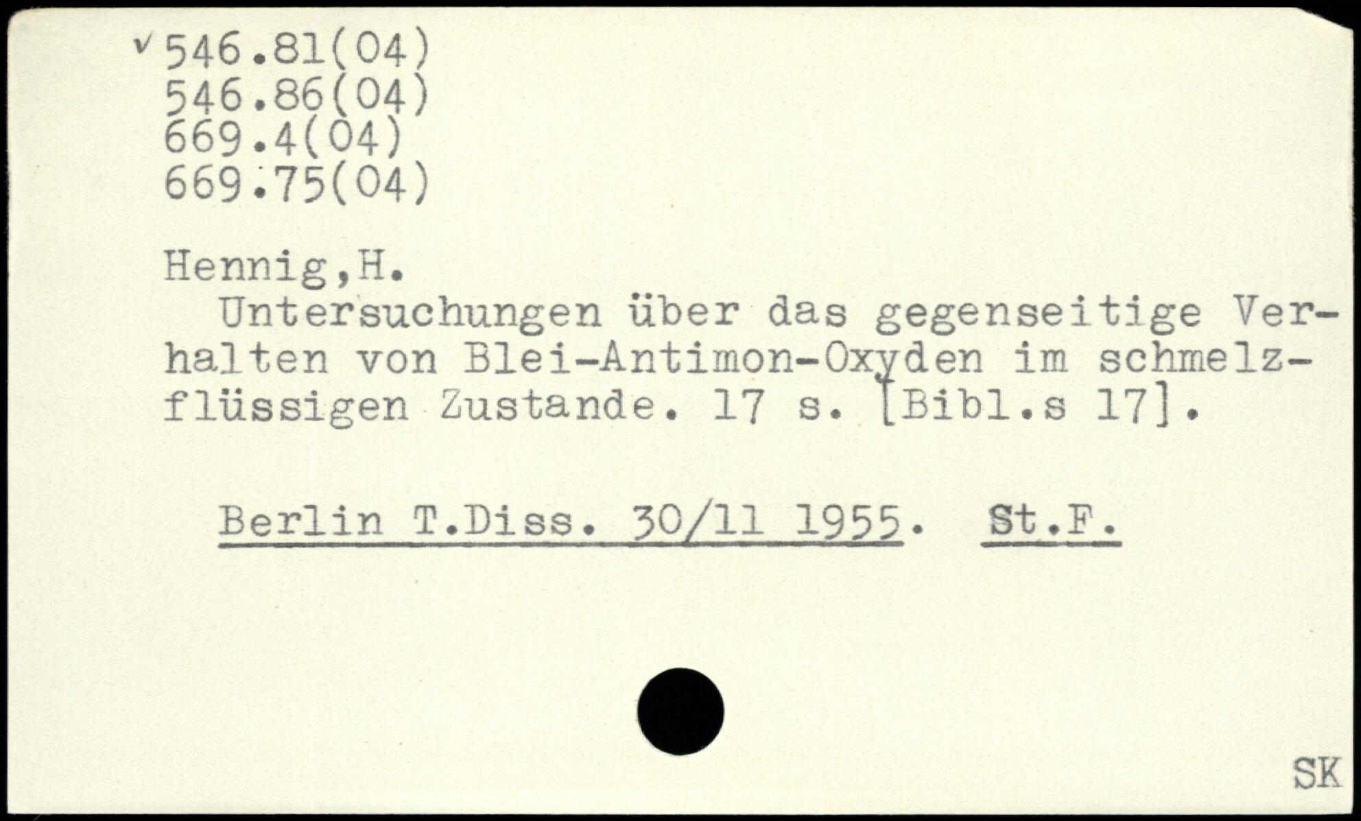 Untersuchungen über das gegenseitige Verhalten von Blei-Antimon-Oxyden im schmelzflüssigen Zustande.