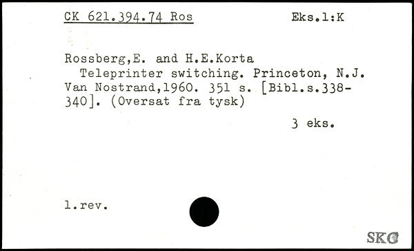 Teleprinter switching. Princeton, N.J. Van Nostrand,1960.