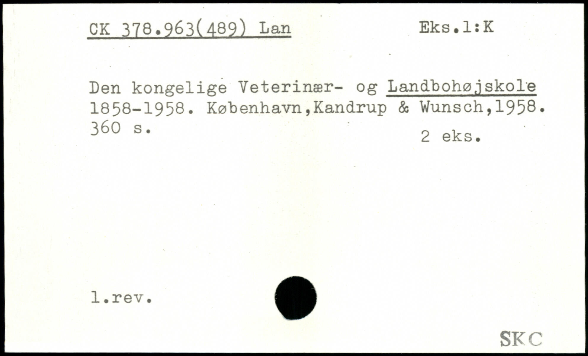 Den kongelige Veterinær- og Landbohøjskole 1858-1958.