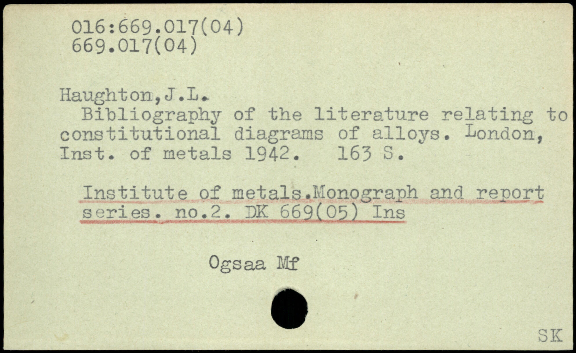 Bibliography of the literature relating to constitutional diagrams of alloys. London, Inst, of metals 1942.