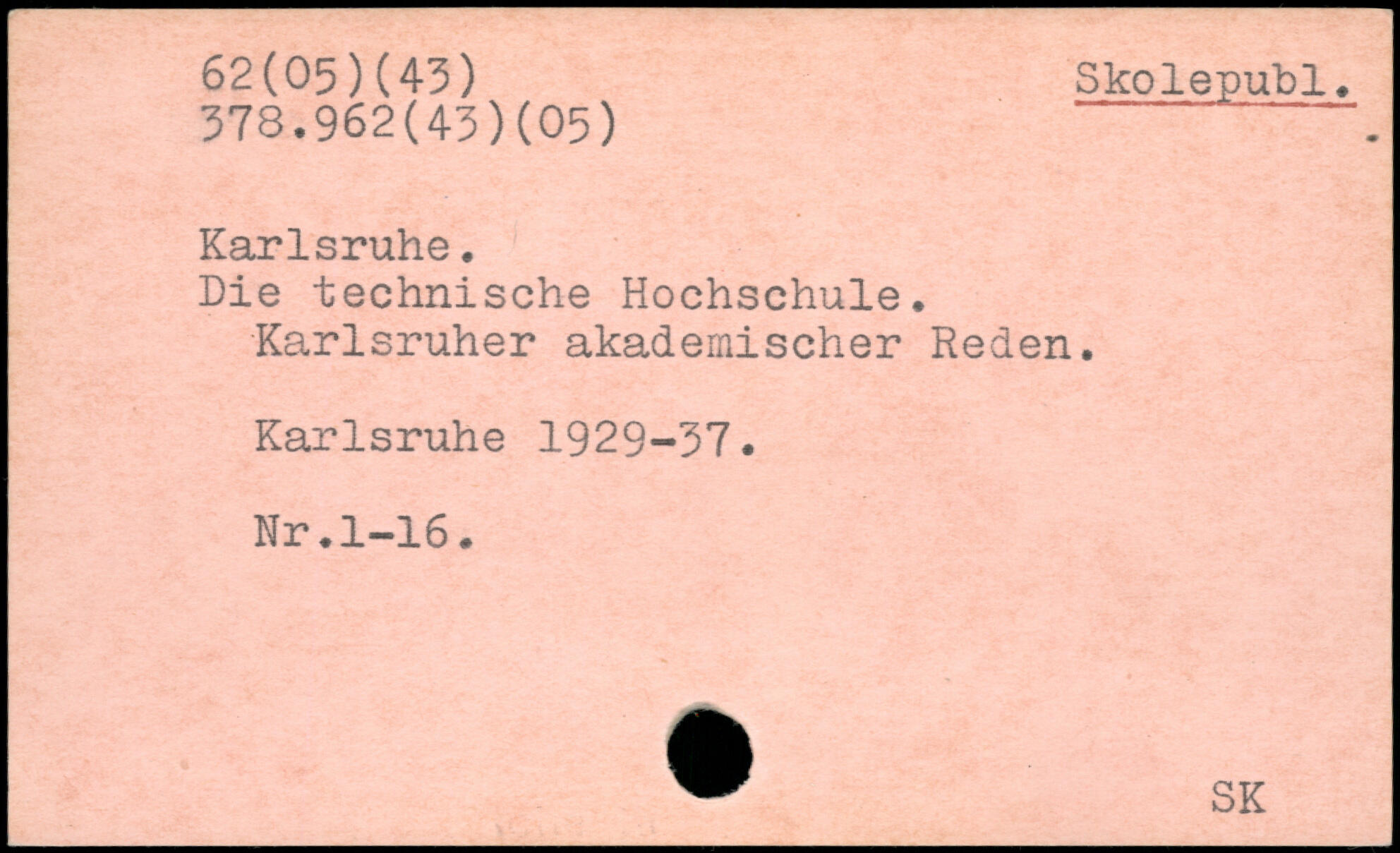 Die technische Hochschule. Karlsruher akademischer Reden. Karlsruhe 1929-37. Nr.1-16.