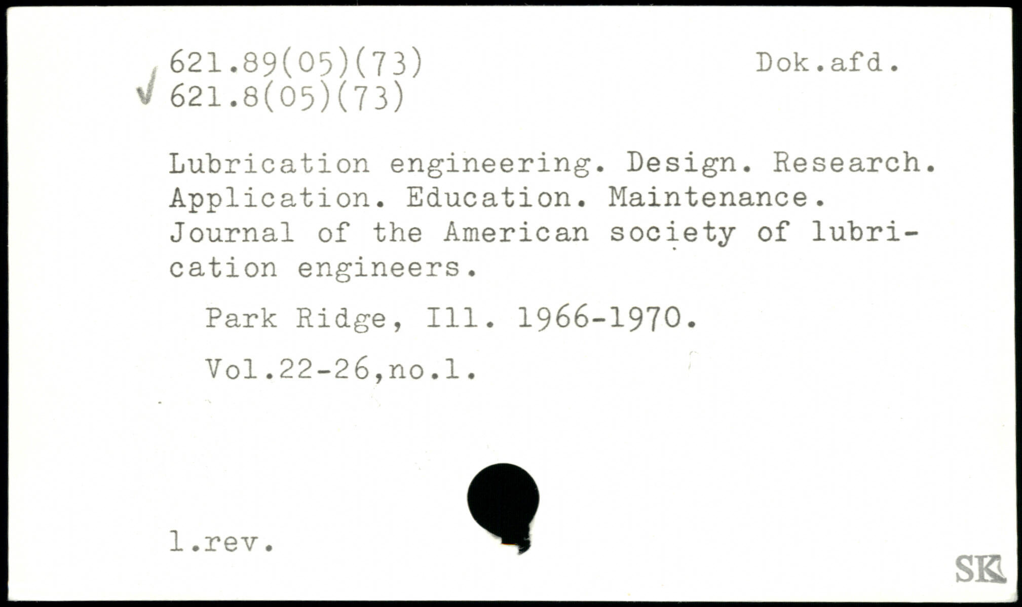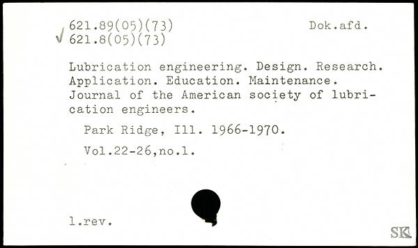 Lubrication engineering. Design. Research, j Application. Education. Maintenance. Journal of the American society of lubrication engineers. Park Ridge, 111. 1966-1970,